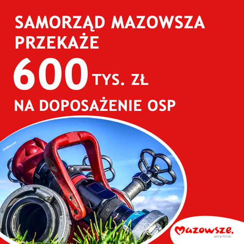 Decyzją radnych województwa do OSP z Mazowsza trafi 600 tys. zł. Tylko w tym roku władze Mazowsza przekazały na doposażenie strażaków ochotników i remonty strażnic ponad 21 mln zł.