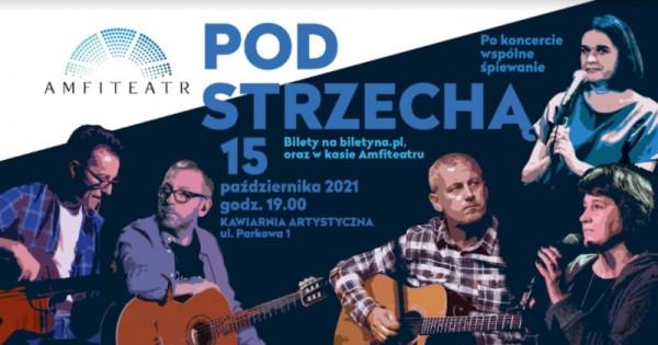 Grupa „POD STRZECHĄ” w składzie: B. Koptas, M. Mosionek, W. Koptas, A. Stępień, A. Fierzbik w autorskich utworach dzieli się refleksjami nad życiem. Zespół od lat 80’ pobudza wyjątkowy klimat recitalu poprzez ciepłe wokale sióstr Beaty i Moniki uzupełniając charakterystyczne brzmienia gitar. Koncert promuje najnowszą płytę zespołu „Drogowskazy”, uzupełniając program koncertu o najnowsze utwory. Po koncercie razem z naszymi gośćmi zaśpiewamy ile dusza zagra!