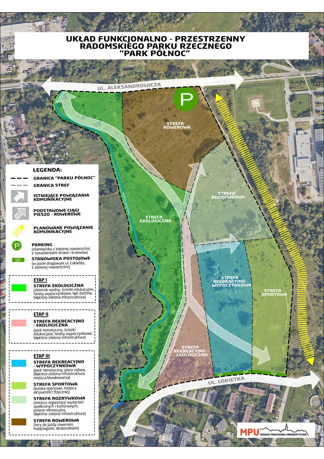 Radomski Park Rzeczny ma docelowo obejmować około 22 hektarów terenów w dolinie rzeki Mlecznej. Pierwszy etap – Park Północ – powstanie w rejonie ulic Łokietka i Aleksandrowicza. Wstępne założenia obejmują m.in. stworzenie zbiornika wodnego, ścieżek pieszo-rowerowych, punktów widokowych i strefy ekologicznej. Więcej na ten temat TUTAJ.