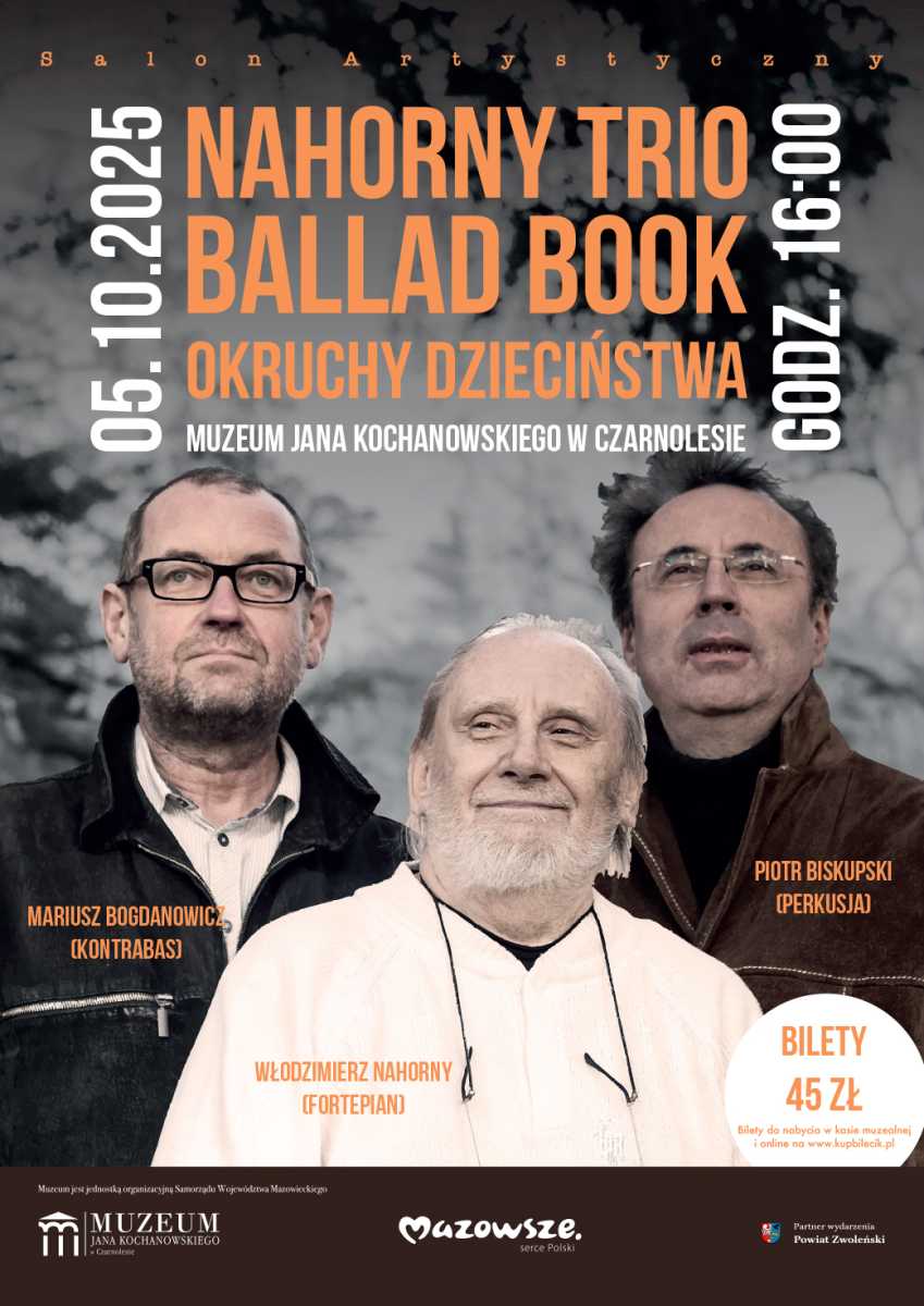 Wydarzenie odbywa się przy współudziale Samorządu Województwa Mazowieckiego. W Czarnolesie Nahorny Trio zagra utwory z płyty "Ballad Book - Okruchy Dzieciństwa". To kolejna odsłona twórczości Włodzimierza Nahornego - ikony i legendy polskiego jazzu, mistrza liryki, który właśnie w balladach znajduje swe najpiękniejsze wcielenie. Muzyka ta jest odpowiedzią na współcześnie otaczający nas krzyk, zgiełk i pośpiech, jest pełna oddechu, spokoju, zadumy i refleksji.