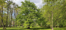 Co prawda przed pałacem stoi pomnik Kochanowskiego, ale to w parku znajduje się najważniejszy punkt muzeum, czyli miejsce, w którym stała słynna lipa - drzewo znane z twórczości poety. W jej miejscu znajduje się teraz obelisk upamiętniający bratanka Jana Kochanowskiego - Piotra, oraz kamienny sarkofag przypominający o zmarłej córce poety - Urszulce. Tuż obok leży kamień znajdujący się tam od czasów Kochanowskiego, a który według legendy ma dawać natchnienie każdemu, kto na nim siądzie.