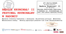 Wszystkie wydarzenia odbędą się w Bibliotece pod Kolumnami (Biblioteka Główna) przy ul. Piłsudskiego 12 w Radomiu. Wyjątkiem są warsztaty dla dorosłych - "Zła krew". To warsztaty śledcze z udziałem producenta telewizyjnego i pisarza kryminałów Macieja Rożna, które odbędą się w Bibliotece Osiedlowej (Filia nr 1 MBP) ul. Osiedlowa 9.