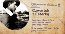 Jest to wydarzenie z cyklu „Czwartek z Esterką”. Poświęcone będzie twórczości Jakuba Zuckera, wybitnego malarza pochodzącego z Radomia. W programie m. in. wykład Renaty Metzger i prezentacja obrazów artysty z kolekcji Muzeum im. Jacka Malczewskiego oraz kolekcjonerskiego albumu z autografem Mistrza. Spotkanie poprowadzi Marcin Kępa - pisarz, autor książek o Radomiu.