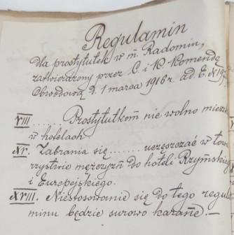Gdy w 1916 r. trwała w najlepsze I wojna światowa obywatele naszego miasta mieli różne zmartwienia: cierpieli z powodu braków w zaopatrzeniu, martwili się o bliskich walczących na różnych frontach. Ale wśród licznych zagadnień, którym sprostać musieli wespół komendant miasta, prezydent Radomia, dyrektor szpitala, czy milicja i wojsko - była też prostytucja.