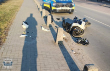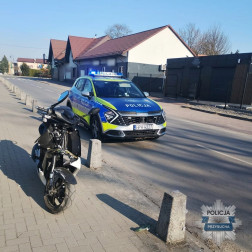 Tego samego dnia, około godziny 15:00, ta sama załoga drogówki została skierowana do kolejnego zdarzenia - tym razem w miejscowości Potworów. Na miejscu znajdował się już Zespół Ratownictwa Medycznego udzielający pomocy poszkodowanej kobiecie. Policjanci ustalili, że 54-letnia mieszkanka powiatu przysuskiego, kierując motorowerem marki Peugeot, najprawdopodobniej zahaczyła kołem o krawężnik, w wyniku czego przewróciła się. Poszkodowana została przewieziona do szpitala. Również w tym przypadku policjanci zatrzymali dowód rejestracyjny pojazdu, a funkcjonariusze z grupy dochodzeniowo-śledczej przeprowadzili oględziny miejsca zdarzenia.