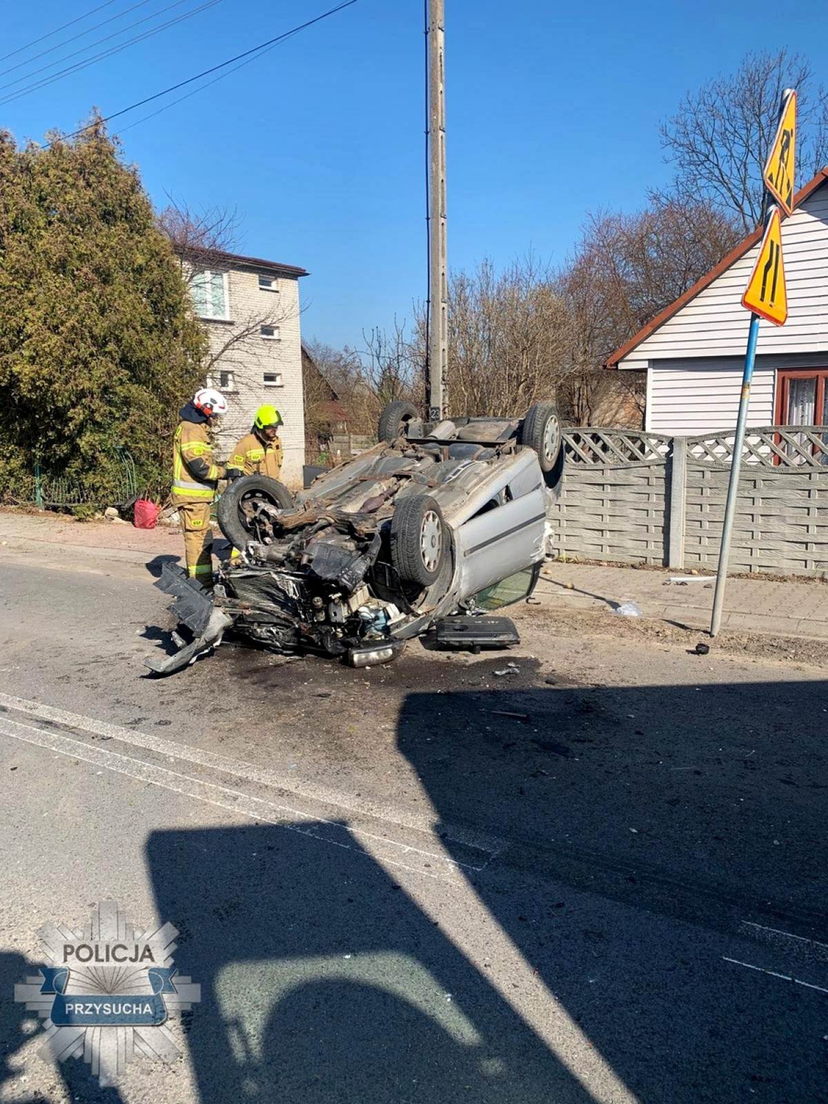 W sobotę, 21 marca około godziny 9:00, policjanci przysuskiej drogówki otrzymali zgłoszenie o zdarzeniu drogowym w miejscowości Ninków. Na miejscu znajdowały się już służby ratunkowe -strażacy Państwowej Straży Pożarnej i Ochotniczej Straży Pożarnej oraz Zespół Ratownictwa Medycznego, którzy udzielali pomocy poszkodowanemu kierowcy.