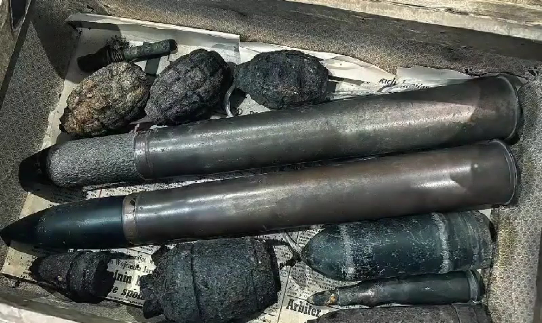 Policjanci znaleźli m.in. granaty ręczne oraz puszkowe, zapalniki do granatów, pociski artyleryjskie, moździerzowe i przeciwpancerne oraz 180 sztuk amunicji, magazynek talerzowy wraz z amunicją. Na posesji znajdował się także karabin Mauser. Jak ustalono wszystkie te przedmioty pochodziły z okresu II Wojny Światowej.