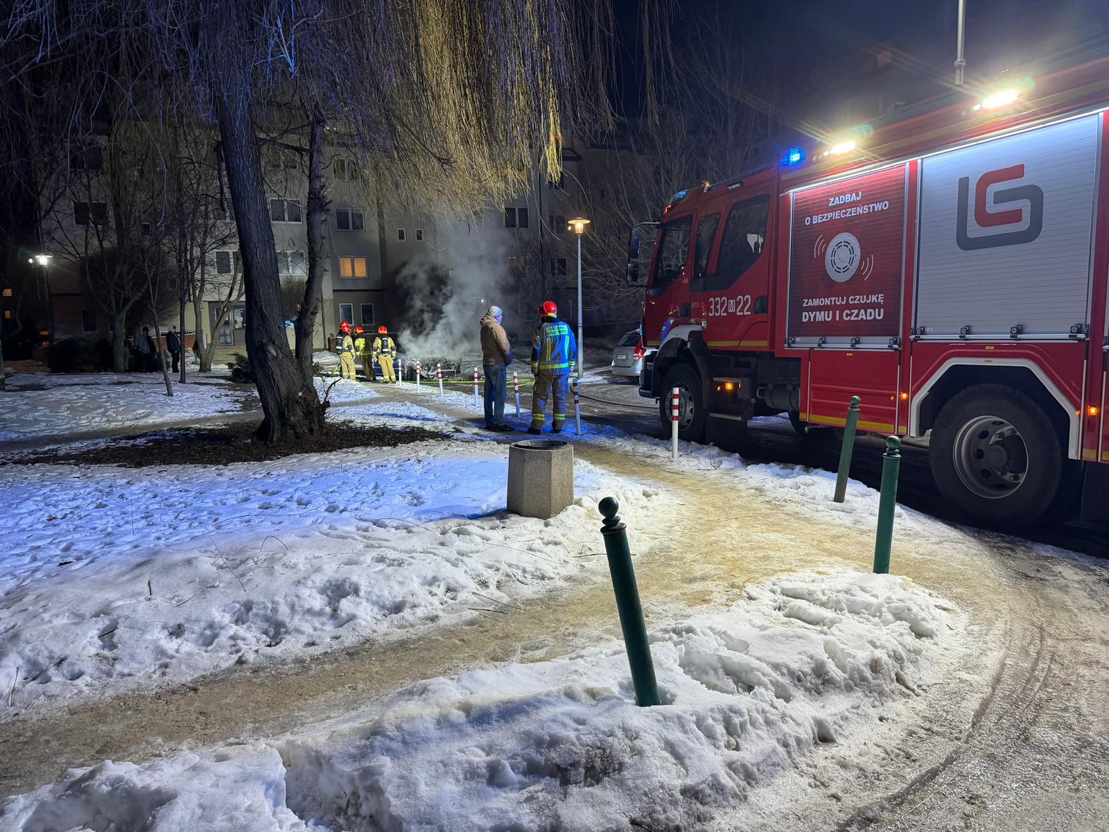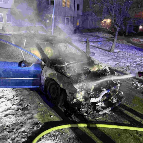 Wezwana na miejsce Straż Pożarna szybko ugasiła pożar, ale nim przybyła zniszczeniu uległo praktycznie całe auto, ocalał jedynie bagażnik z zawartością.