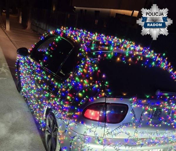 Nietypową interwencją chwalą się policjanci radomskiej drogówki. Ukarali mandatem kierowcę, który udekorował swój samochód jak choinkę, w migoczące lampki.