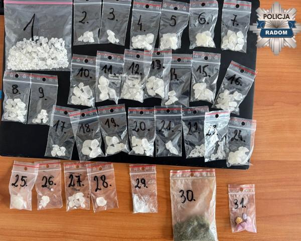 Na trop radomianina policjanci z Wydziału do walki z Przestępczością Narkotykową Komendy Miejskiej Policji trafili rozpoznając środowisko związane z przestępczością narkotykową. Ustalili, że posiadać znaczne ilości środków odurzających. Sprawdzili jego mieszkanie. Okazało się znaleźli w nim około 90 gramów środków odurzających, w tym m.in. amfetaminę i mefedron.
