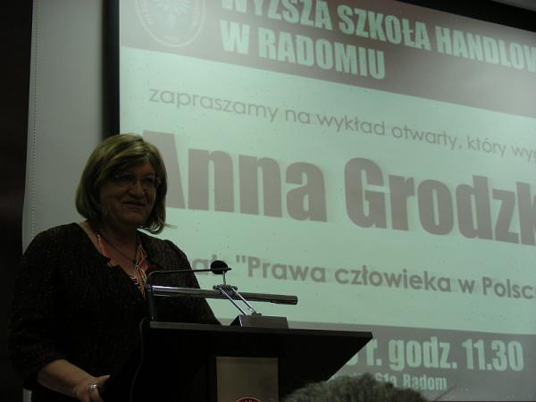 Otwarty wykład Anny Grodzkiej pt. „Prawa człowieka w Polsce fair” był poświęcony głównym tezom związanym z programem wyborczym posłanki. – Zazwyczaj nie wykładam, bardziej preferuję dyskusję. I taki jest cel dzisiejszego spotkania: dyskusja o tym czy żyjemy w Polsce fair – powiedziała posłanka tuż przed spotkaniem ze studentami i radomianami.
