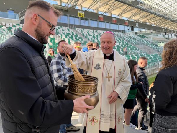 Święcenie odbyło się w dwóch turach, o 10:30 i 11:15. W pierwszej z nich uczestniczył biskup Marek Solarczyk. - Ale nas zaszczyt kopnął, sam biskup będzie święcił nasze koszyczki - ciesząc się mówiła nam jedna z kibicek.