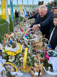 Po części modlitewnej kapłan poświęcił pokarmy ustawione na stołach przed plenerowym ołtarzem. Następnie przeszedł po trybunach błogosławiąc zebranym i kropiąc ich wodą święconą.