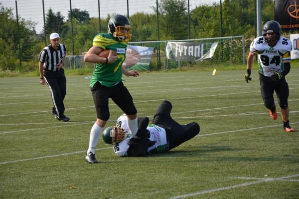Drużyna Green Ducks Radom przegrała mecz w lidze futbolu amerykańskiego z Tytanami Lublin 14:28. Radomianie na boisku "Staszica" walczyli dzielnie, ale nie dali rady niepokonanemu jeszcze w tym sezonie zespołowi z Lublina. Zapraszamy do obejrzenia zdjęć z meczu.