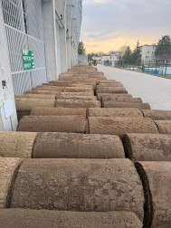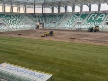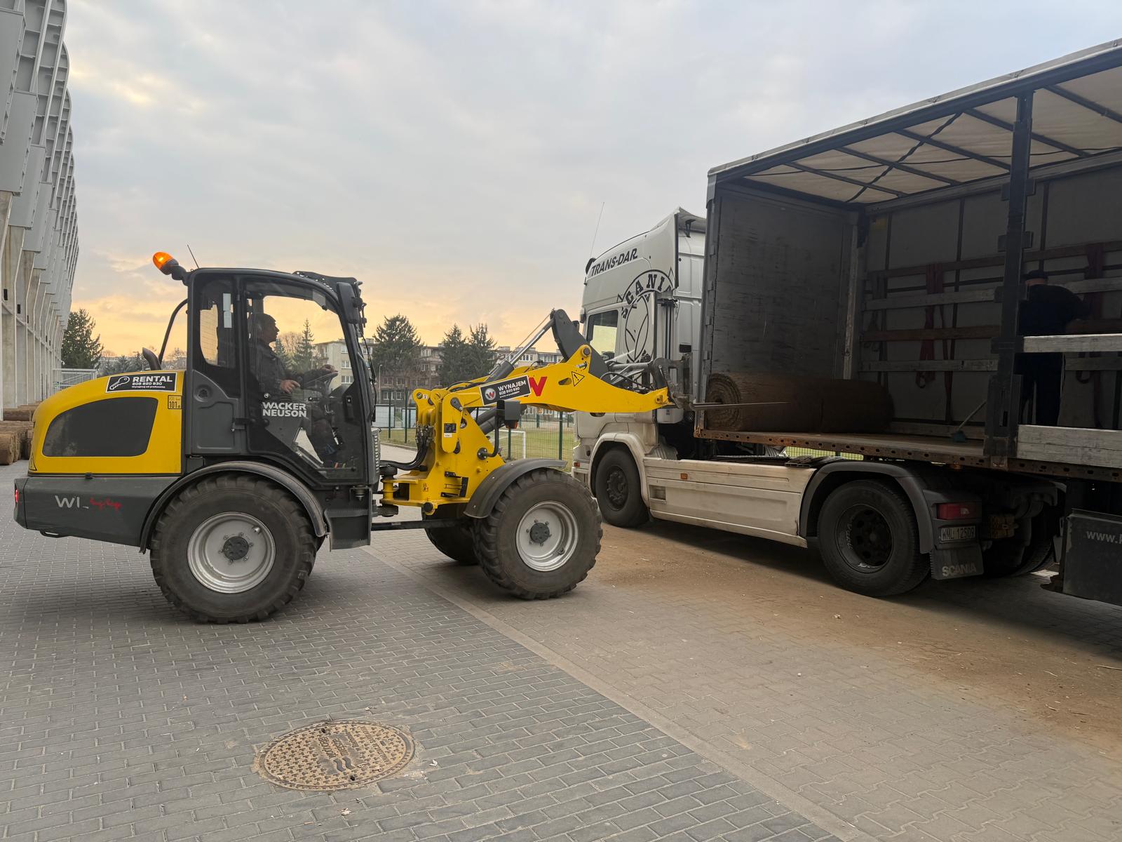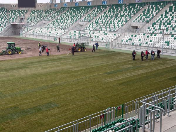 Na boisku od środy nie ma już starej, zniszczone trawy. Zaraz też ruszyło układanie nowej, która została przywieziona TIR-ami z Węgier. Kilkumetrowe chodniki trawy, która jeszcze w poniedziałek leżał na polu hodowlanym, układane są przy pomocy specjalnej maszyny.