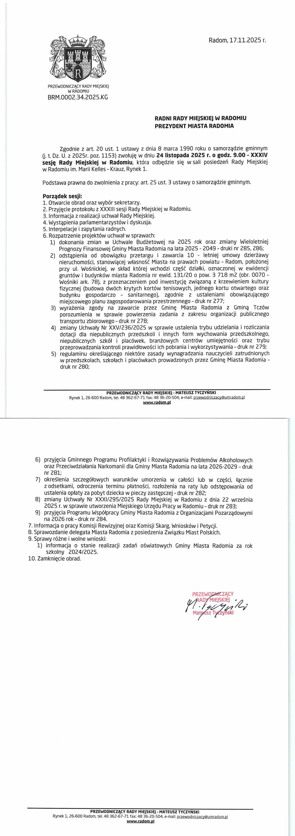 Dziś w ratuszu odbywa się XXXIV sesji Rady Miejskiej w Radomiu. Głosowane m.in. będą zmiany w budżecie m.in, z powodu pozyskania funduszy z KPO na żłobek przy ul. Batalionów Chłopskich oraz majątkowe dokapitalizowanie spółki MOSiR.