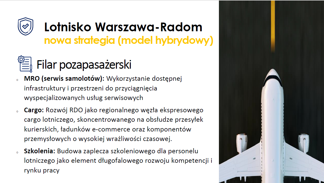 Nowa strategia ma zapewnić Lotnisku Warszawa-Radom trwałą rolę w krajowym systemie transportowym, przy jednoczesnym racjonalnym zarządzaniu kosztami, ryzykiem oraz potencjałem rozwojowym regionu.