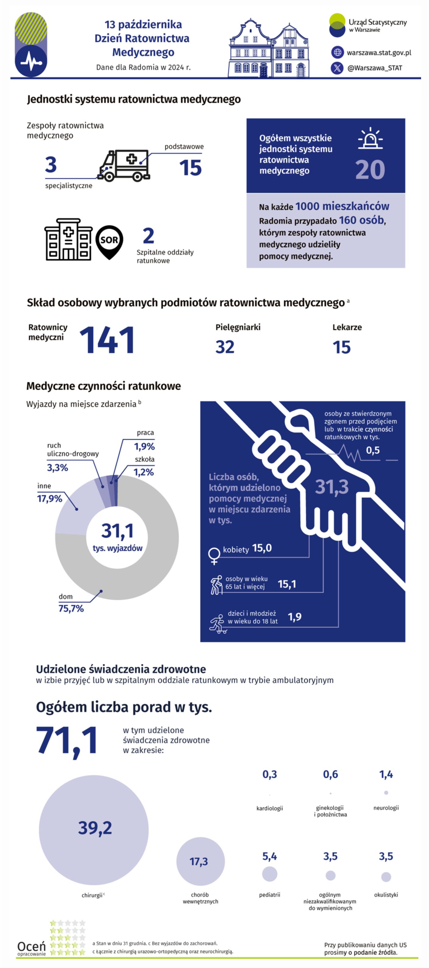 Na każde 1000 mieszkańców Radomia, przypadało 160 osób, którym wyjazdowe zespoły ratownictwa medycznego udzieliły pomocy medycznej w miejscu zdarzenia.