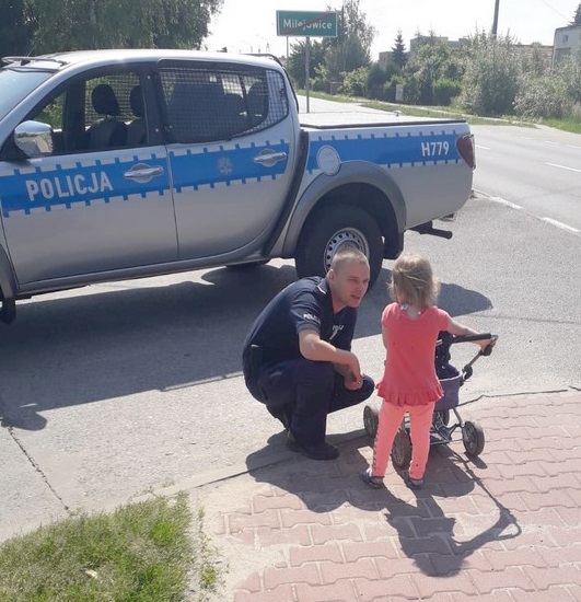 Tym razem sytuacja była trochę inna, ale także zakończyła się szczęśliwie. W czasie festynu rodzinnego, który odbywał się w Nowym Mieście nad Pilicą mieli pokazać widzom techniki i taktyki interwencji. Jadąc w stronę powiatu grójeckiego, w Milejowicach ich uwagę przykuło dziecko, które spacerowało samotnie, bez opieki rodziców. Policjanci natychmiast zatrzymali radiowozy i podeszli do dziewczynki, która prowadziła przed sobą wózek dla lalek. 3-latka od razu uśmiechnęła się na widok policjantów. Przedstawiła się, jednak nie potrafiła powiedzieć, gdzie mieszka.