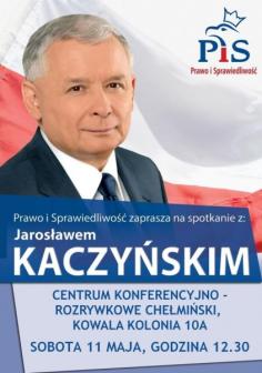 W sobotę, 11 maja, o godz. 12.30 z mieszkańcami powiatu radomskiego szef PiS spotka się w Centrum Konferencyjno-Rozrywkowym Chełmiński w Kowali Kolonii 10A. Wstęp na spotkanie jest wolny.