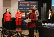 Bernadetta Nędzi jest specjalistą do spraw bezpieczeństwa narodowego, a także specjalistą w zakresie zarządzania kryzysowego i ochrony ludności. Mówiła o zachowaniu w czasie różnych zagrożeń. Pokazała uczestnikom jak może wyglądać plecak ewakuacyjny, na czym polega cyberbezpieczeństwo.